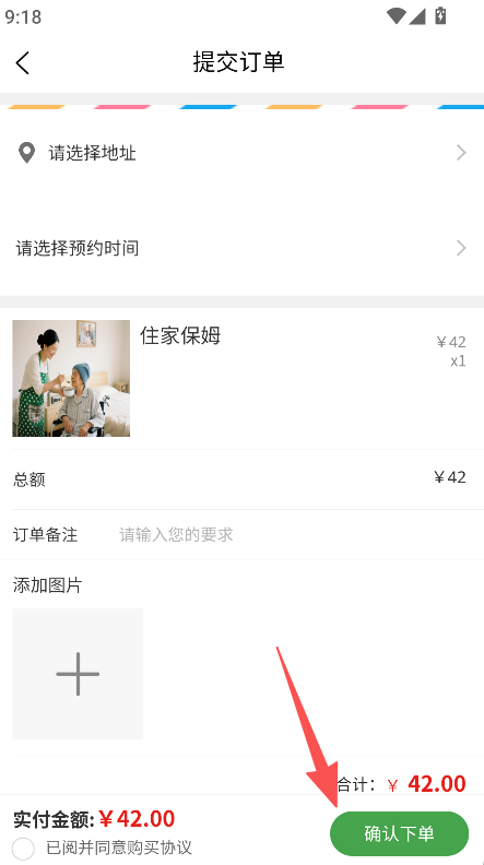 3、选择地址、预约时间,确认下单。