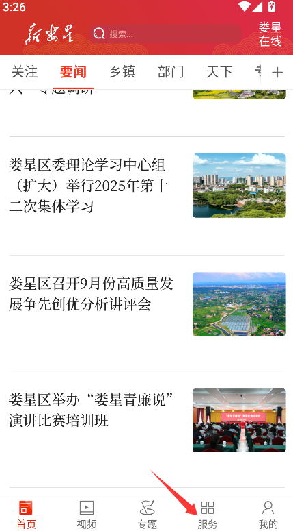 1、在主界面底部导航栏中找到并点击“服务”入口,进入服务项目总览页面。