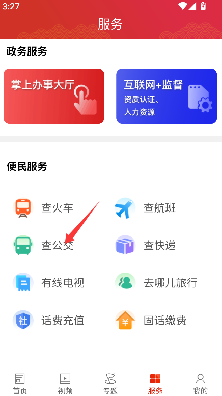 2、浏览所有服务分类,找到并选择“查公交”这一特定功能板块。