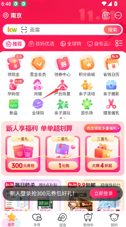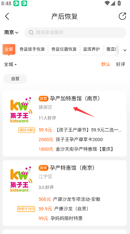 1、进入首页后,在分类导航或功能区块中找到并点击"产后恢复"服务入口。