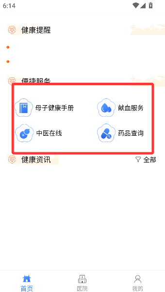 3、轻触底部"医院"标签秒变导航雷达,立即罗列周边医疗机构距离与信息供您选择。