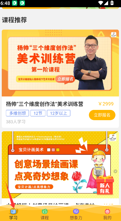1、在应用主界面中找到并点击底部导航栏或页面显著位置的"学习"入口,进入课程中心页面。