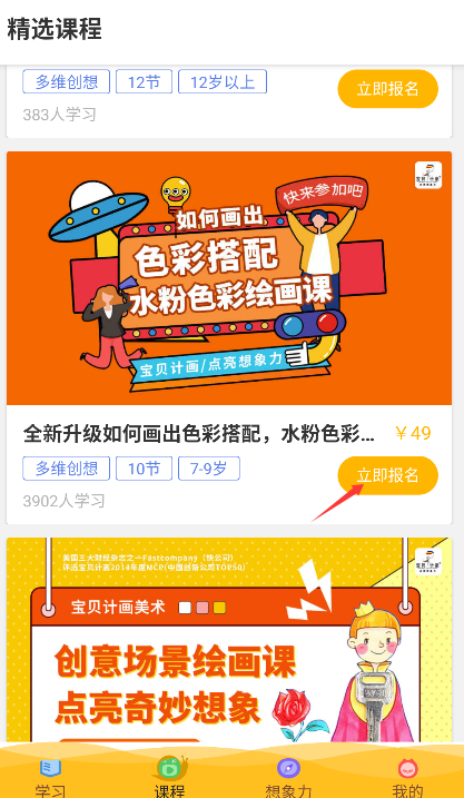 2、浏览展示的各类绘画课程列表,根据课程主题、难度等信息,选择感兴趣的特定课程。