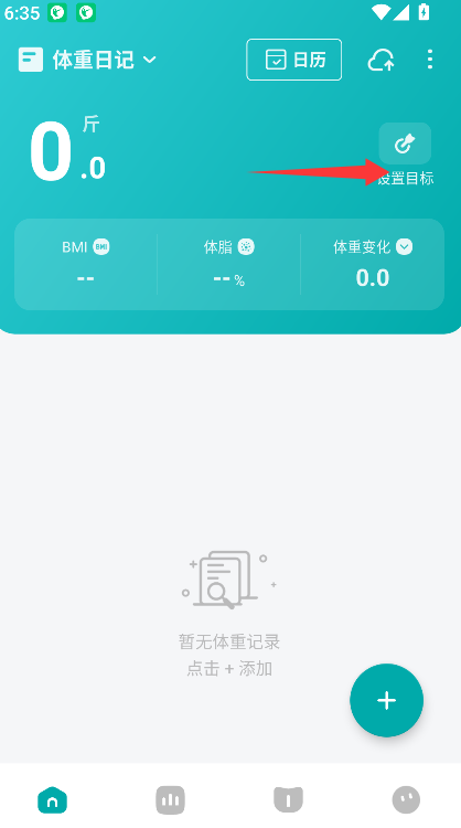 1、在主界面中找到并点击"设置目标"功能入口,进入目标体重设定页面。