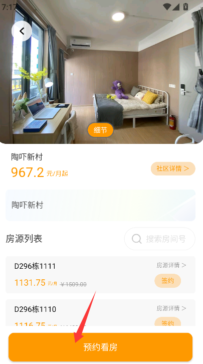 3、通过手指向左滑动屏幕,即可按顺序浏览该房源更多详细的实景照片,直接点预约房源。