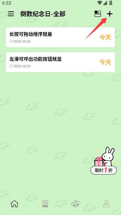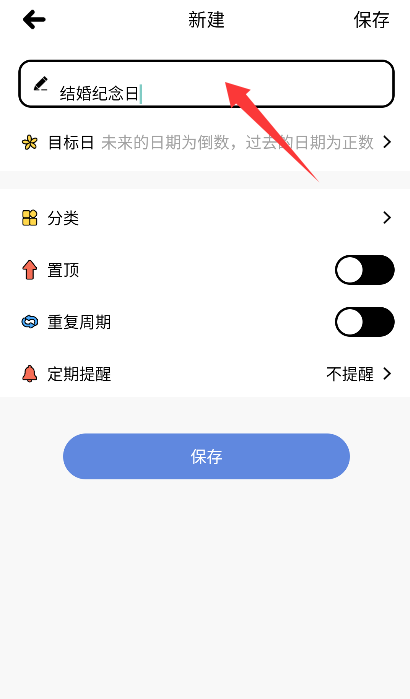 1、点击界面右上角的“+”按钮,进入新建纪念日事件页面,开始创建新的倒计时事项。