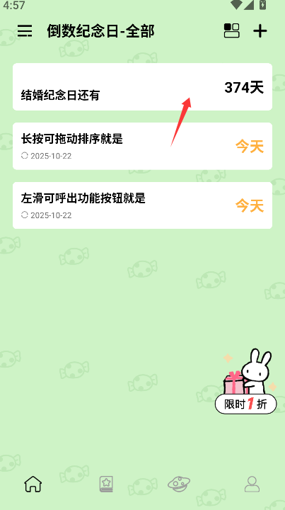 2、工具主界面会以卡片或列表形式展示距离该日期的剩余时间。
