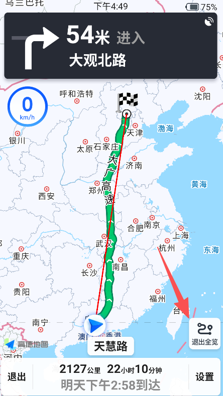 3、点击开始导航,进入实时导航界面,按照指引行驶。