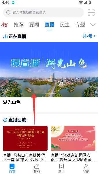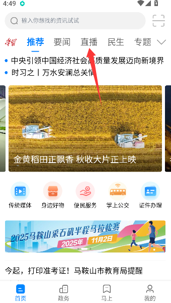 1、在应用首页顶部导航栏找到并点击“直播”入口,即可进入实时直播内容列表页面。