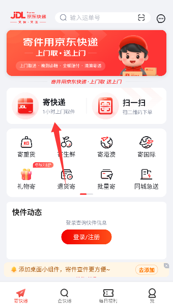 2、若是新朋友,记得先去“注册”通道报个到,简单几步就能领到一张专属电子通行证,开启寄件新世界。