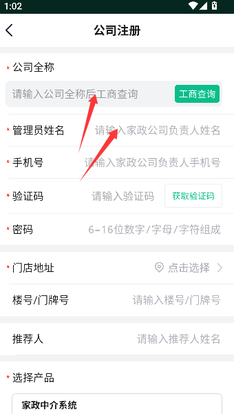 2、在搜索框里刷入公司全称,像侦探一样进行工商信息查重,再郑重其事地填入姓名确立法人身份。