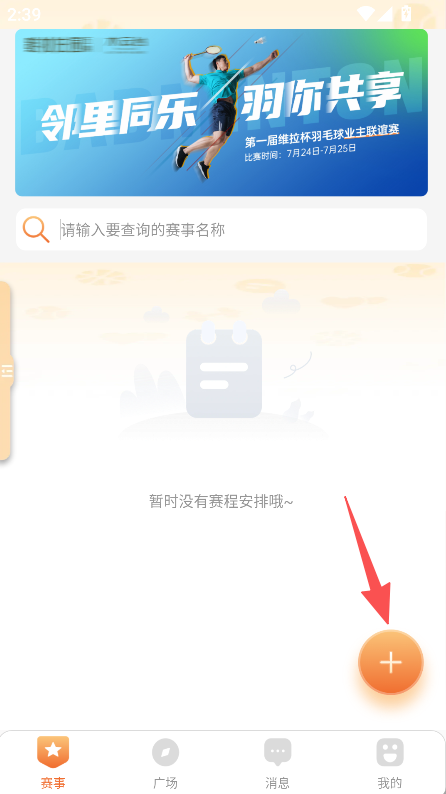 1、打开软件,点击“+”号,进入创建比赛界面。