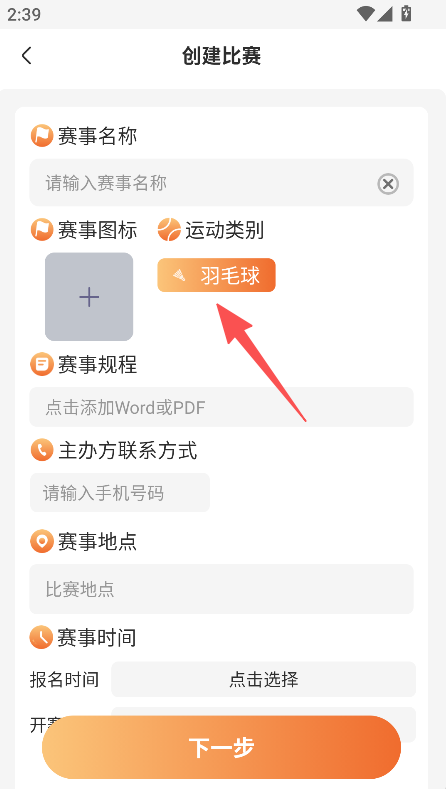 《运动疯搭》是一款专注运动赛事领域的软件,支持羽毛球等运动赛事创建,可设置赛事名称、图标、规程、地点、时间等详细信息,还能添加细分项目及人员、费用等设置,流程清晰便捷,助力赛事组织者高效完成赛事创建与管理,是运动赛事组织的得力助手。