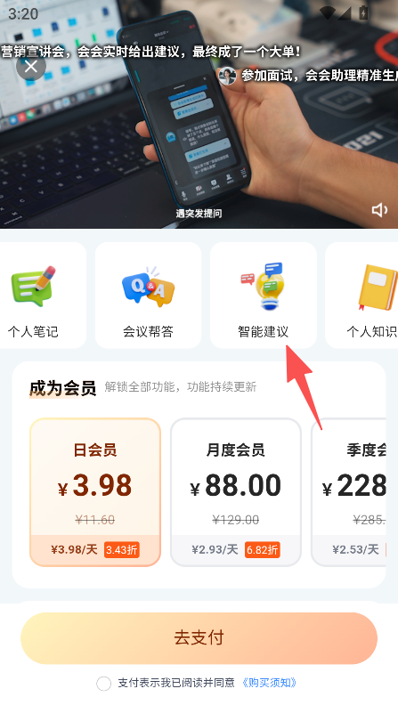 3、使用智能建议模块,获取会议与知识管理的智能支持。