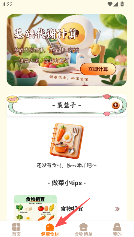 《食味巷》是一款专注饮食健康的软件,提供基础代谢计算功能助力热量规划,健康食材板块涵盖食物相宜相克知识指导科学搭配,还有菜篮子管理食材、做菜小tips辅助烹饪,从代谢计算到食材搭配再到烹饪提示,全方位助力用户科学饮食、健康烹饪。