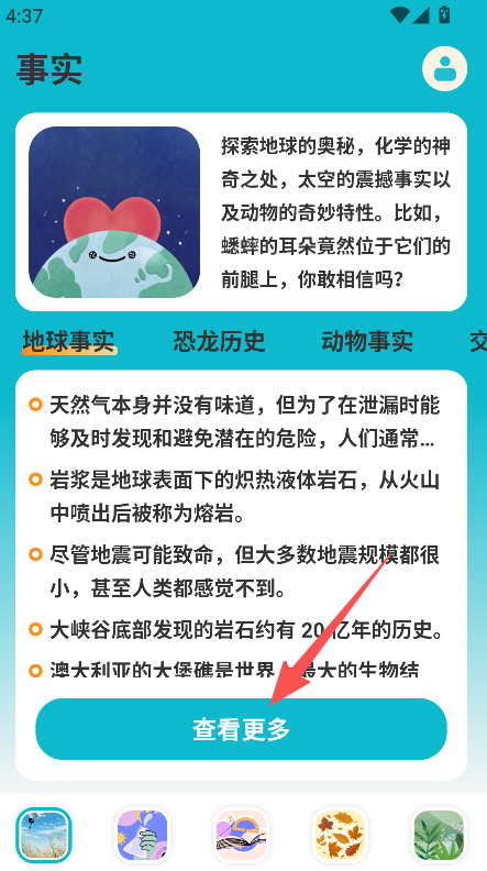 1、科学事实查询功能,可浏览地球、恐龙等多领域科学知识,满足用户对科学奥秘的探索需求。