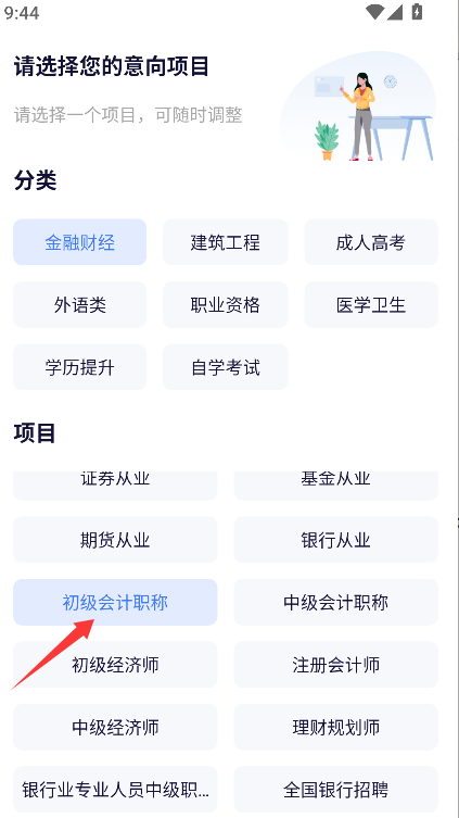 1、在主界面清晰定位并点击“初级会计职称”入口,即可进入该考试类别的专属学习空间。