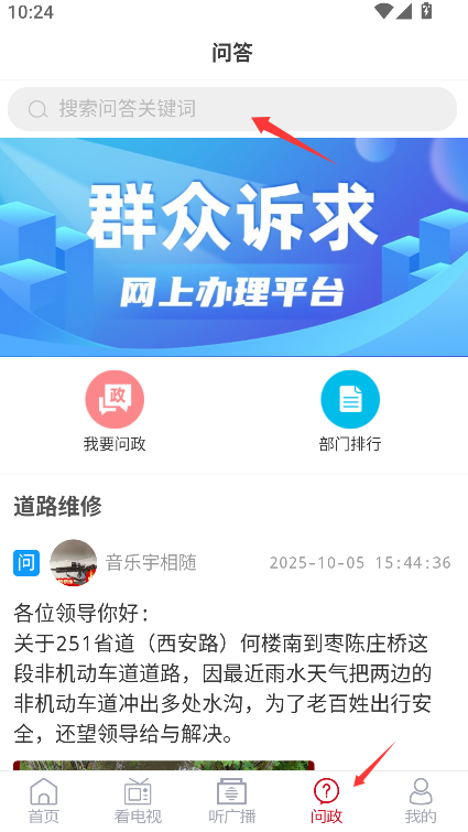 1、在主界面或导航菜单中找到并点击“群众诉求”功能入口,即可进入民意反馈与问题提交的主页面。