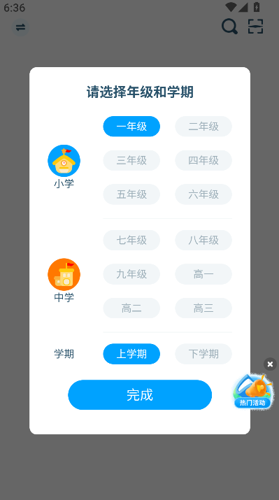1、学习者首先需要根据自身教育阶段选择对应的年级,例如从小学到高中的具体年级选项。