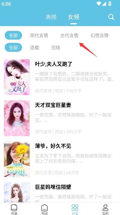 2、进一步选择特定子分类后,在出现的书籍列表中点击感兴趣的小说封面或标题,即可进入该小说的详情页。