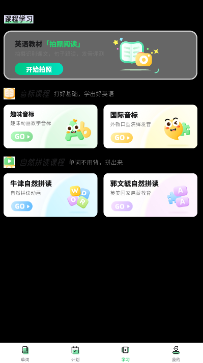 2、选择“趣味音标”这一特定学习模式,点击后便可进入详细的单元学习训练选择界面。