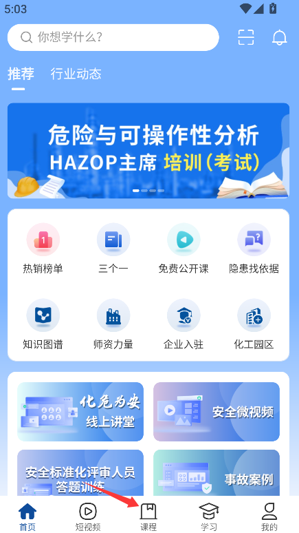 1、找到并点击“课程”中心入口,即可浏览平台提供的全部学习内容。