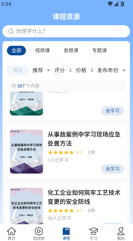 化危为安是一个服务于化工行业及相关从业者的学习平台。平台聚焦化工领域,内容涵盖安全、技术、管理等多方面专业知识,满足从基础到高级的不同职业阶段学习需求。学习内容按模块划分,从业人员可根据自身岗位或兴趣,选择具体课程或知识板块进行学习。这种方式使学习过程条理清晰,目标明确。