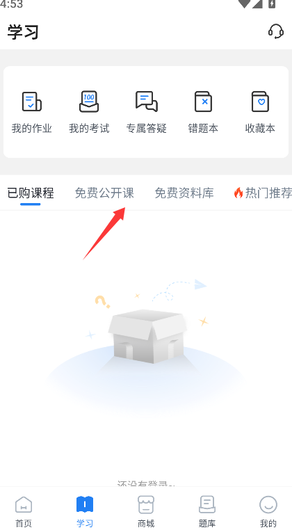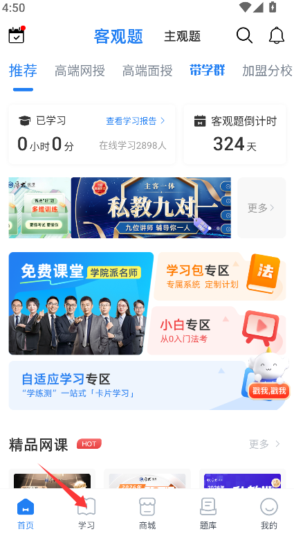 1、清晰可见“学习”入口,点击该入口即可进入核心学习区域。