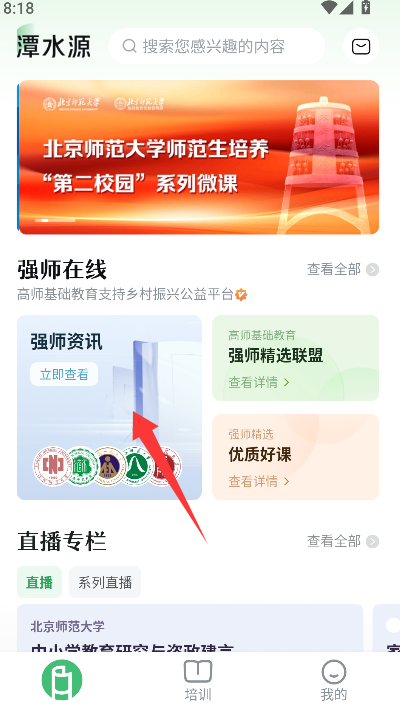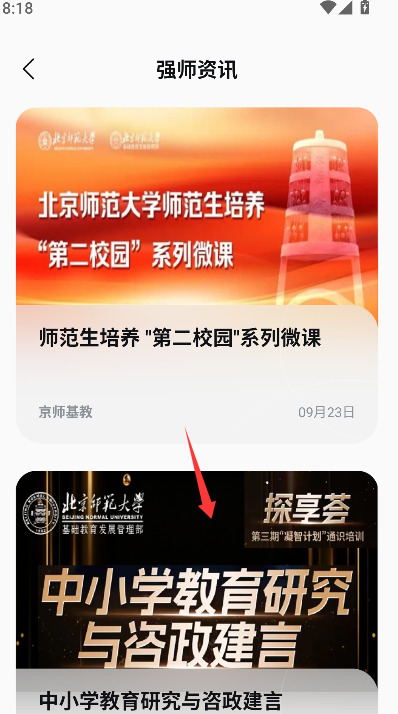 1、在页面上找到并点击“强师资讯”栏目入口,即可进入资讯列表页面。