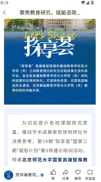 3、页面通常会提供互动功能按钮,点击“分享”可将内容转发给他人或分享至其他平台。