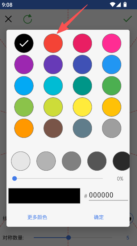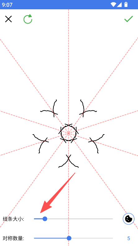 2、调整线条大小和对称数量,点击颜色选择器选颜色。
