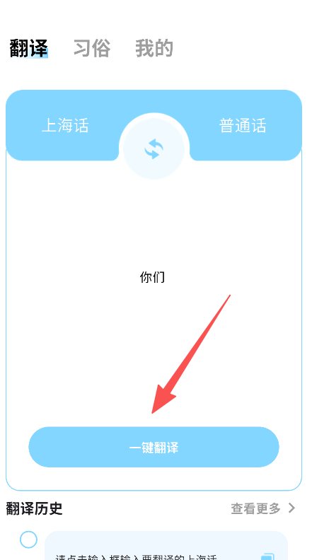 1、翻译功能直接高效,输入文字一键翻译,快速获取上海话与普通话对应结果,使用便捷。