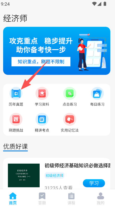 3、设有优质课程功能,提供经济师相关课程,辅助考生在练习之外进行知识学习。