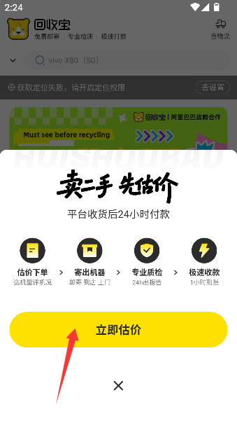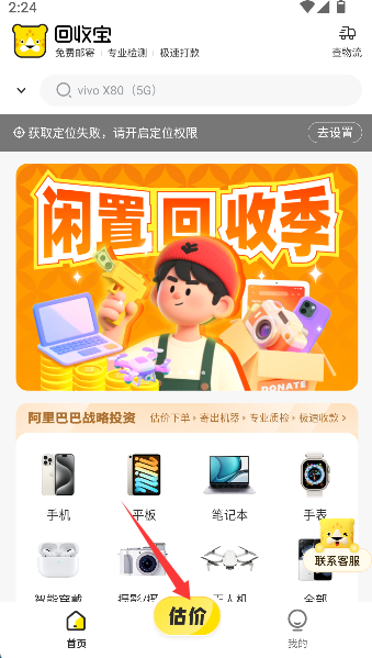 1、在回收宝app首页果断按下那个充满希望的“估价”按钮,仿佛启动了一台微型印钞机,准备为沉睡的旧机赋予新的价值。