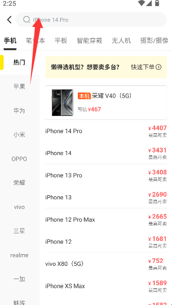 3、在机型选择页面,无论是精准搜索还是慢慢浏览,都像在邀请一位重要嘉宾登场,选定后便进入核心舞台——手机估价页面。