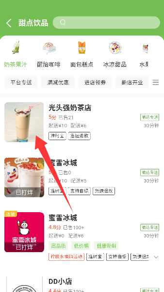 2、在琳琅满目的店铺中精准点选“光头强奶茶店”,就像探险家确定了宝藏坐标,准备发掘店内的特色饮品宝藏。