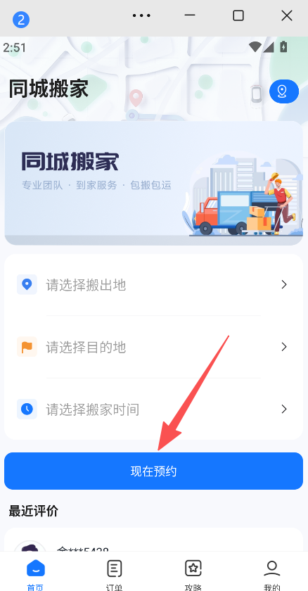 3、支持在线预约功能,完成地址和时间选择后可快速提交预约,启动搬家服务流程。