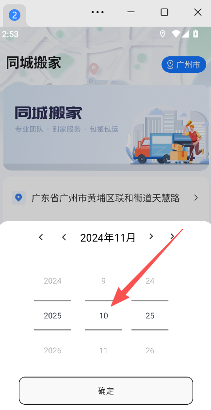 2、拥有时间选择功能,提供日期选择界面,可根据自身情况选择合适搬家时间。
