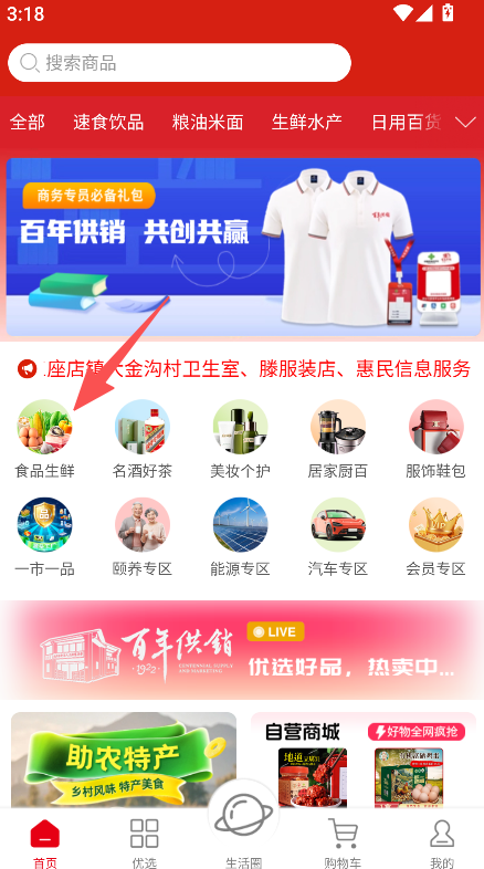 1、打开软件,点击食品生鲜等品类。
