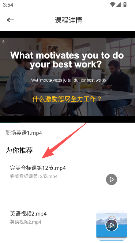 3、支持课程推荐功能,根据用户学习内容推荐相关课程,拓展学习广度,让用户接触更多优质英语资源,学习更高效。