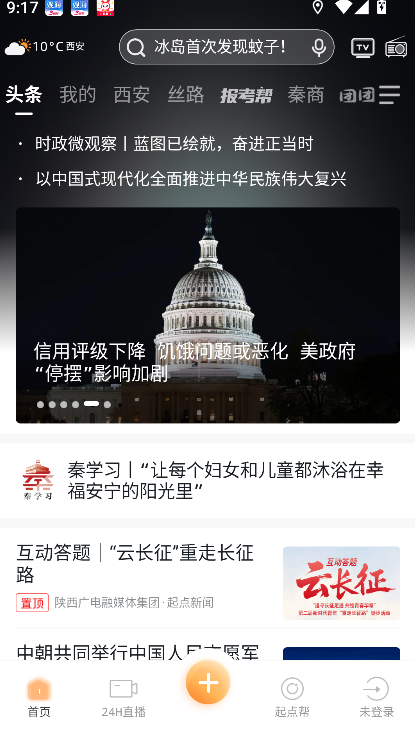 起点新闻是陕西广电融媒体集团设立的新闻平台。该程序核心功能是发布陕西省本地的新闻与资讯。主要方式是阅读新闻与进行互动。程序内分设不同栏目,呈现时政动态、社会焦点、民生政策及文化旅游等内容。内容来源为专业采编团队,保证信息的准确与时效。程序也包含互动功能,可对新闻事件发表观点。