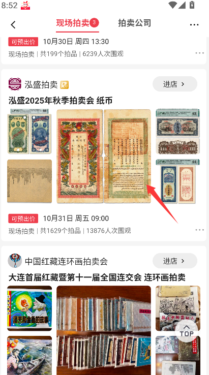 3、 最后,在店铺的拍卖现场内,仔细浏览或通过筛选功能查找心仪的物品,关注其出价动态。
