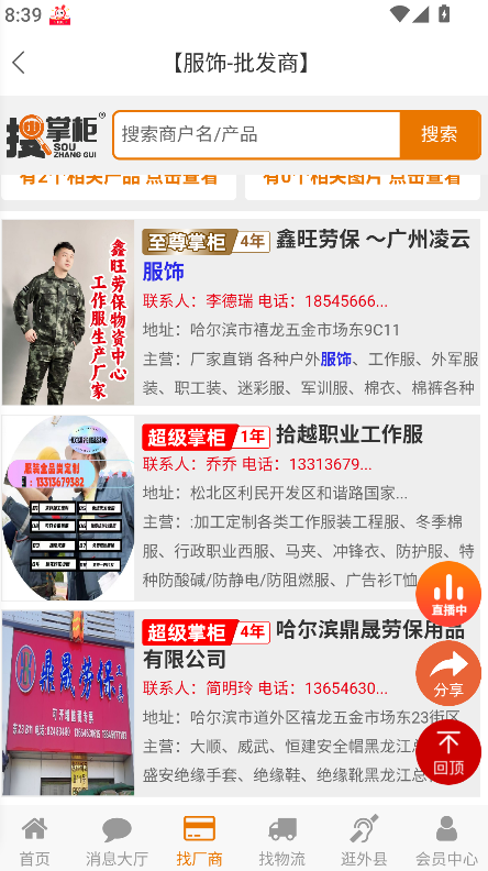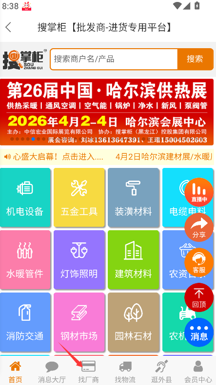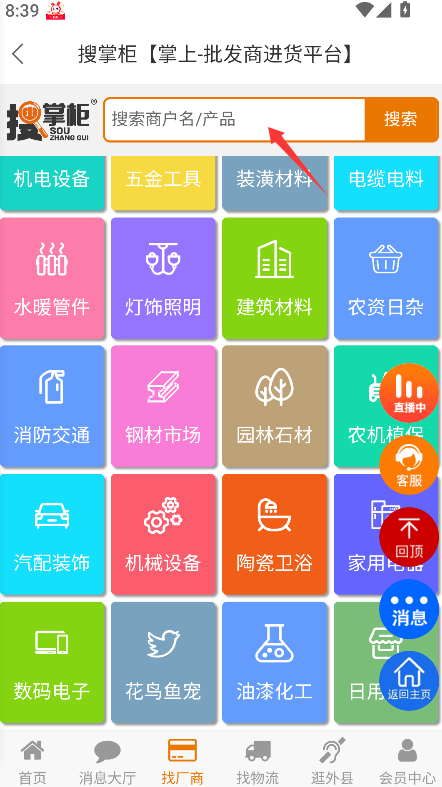 1、主界面中找到并点击“找厂商”按钮,进入供应商查找页面。