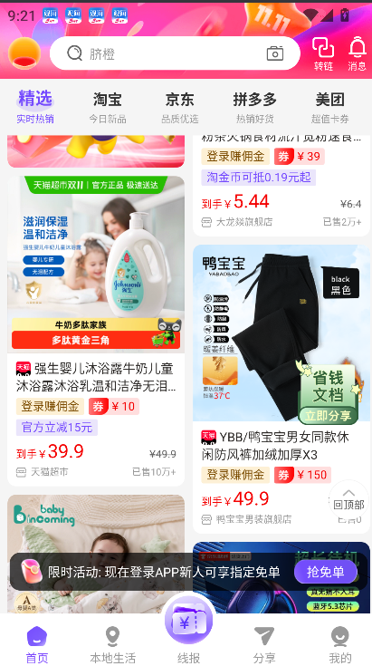 3、成功登录账户后,即可在全平台范围内自由浏览商品、领取优惠券并完成完整的商品选购与支付流程。