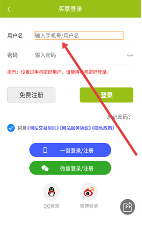 1、在应用主界面找到并点击“买家”功能入口,系统将跳转至买家账户登录页面。