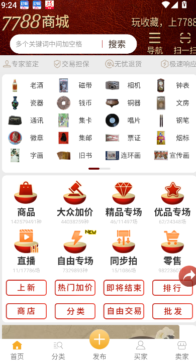 7788商城是一款移动客户端,核心功能是物品零售、拍卖与批发。该平台汇集海量商品资源,涵盖艺术品、二手物品、数码家电等多个类别。参与者可直接按标价购买所需物品,也可参与竞拍获取商品,还能进行批量采购。这种设计适应了不同购物需求与场景。