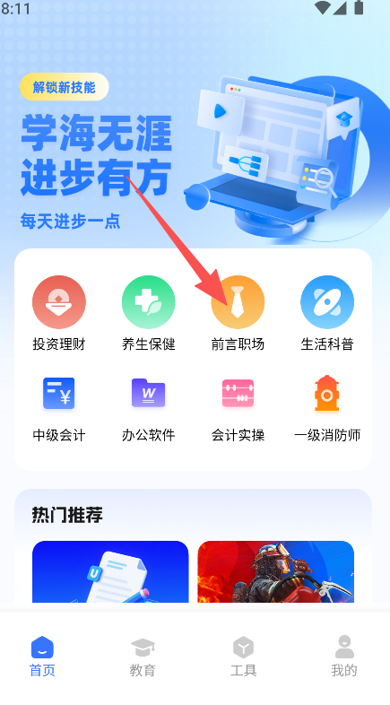 《三点半延时服务》是一款聚焦多领域学习的软件,涵盖投资理财、前言职场、语言技能等课程,课程列表清晰,学习形式丰富,倡导每天进步一点,助力用户提升技能、解锁新能力,是利用碎片时间学习新技能的实用工具。