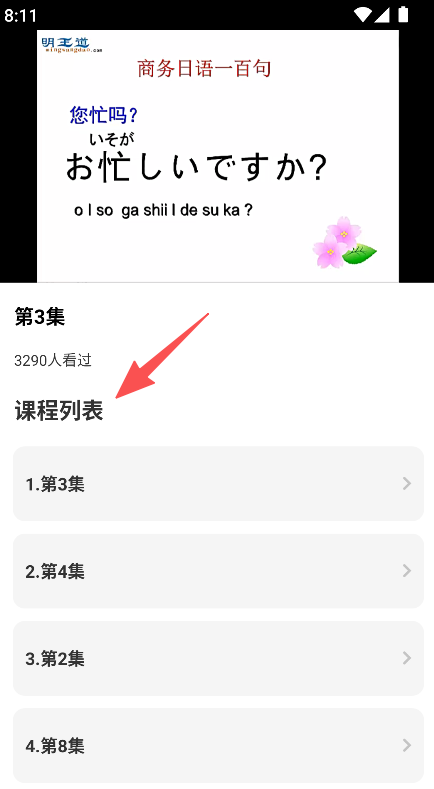 2、具备课程列表功能,清晰展示各集内容,便于管理学习进度,按需选择学习。
