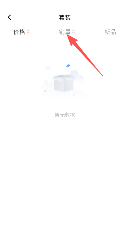 2、进入分类下的套装等品类,点击销量,按销量筛选商品。