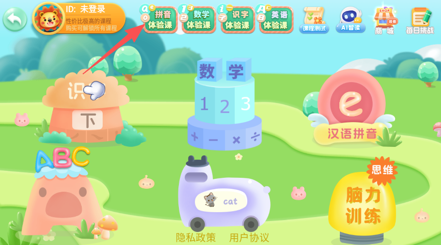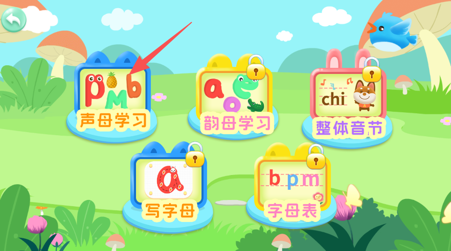 1、打开软件,点击拼音体验课,进入字母学习板块。